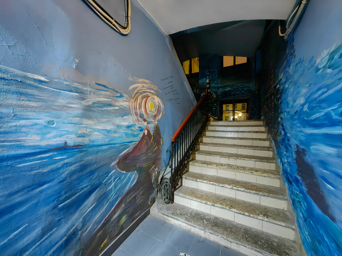 Сегодня вечером с лёгкой руки Ольги Ефимовой, которая вчера в комментариях написала об одной интересной парадной, я оказался по теперь уже известному адресу на Вознесенском проспекте. Лучше бы, конечно, здесь побывать днём так как в парадной очень мало света, но мне подвернулся случай и я им воспользовался. Просто шёл по делу по Садовой улице и увидел, что в парадную кто-то заходит. Поэтому решил не откладывать в долгий ящик её посещение. Когда именно появились эти рисунки и кто их сделал не знаю. Может быть вы подскажете? Но исполнены они рукой профессионала или близко к этому. Потому что совсем уж любитель, далёкий от искусства. так бы сделать не мог, мне кажется. Стены парадной расписаны на всех этажах. Настоящая художественная галерея! Само же строение (Дом П. Е. Карелина) было возведено в 1843 году по проекту академика архитектуры Реймерса Якова Ивановича. Красота! Сейчас в здании находится сразу три гостиницы, хотя есть и жилые квартиры. Среди рисунков особенно меня впечатлила р