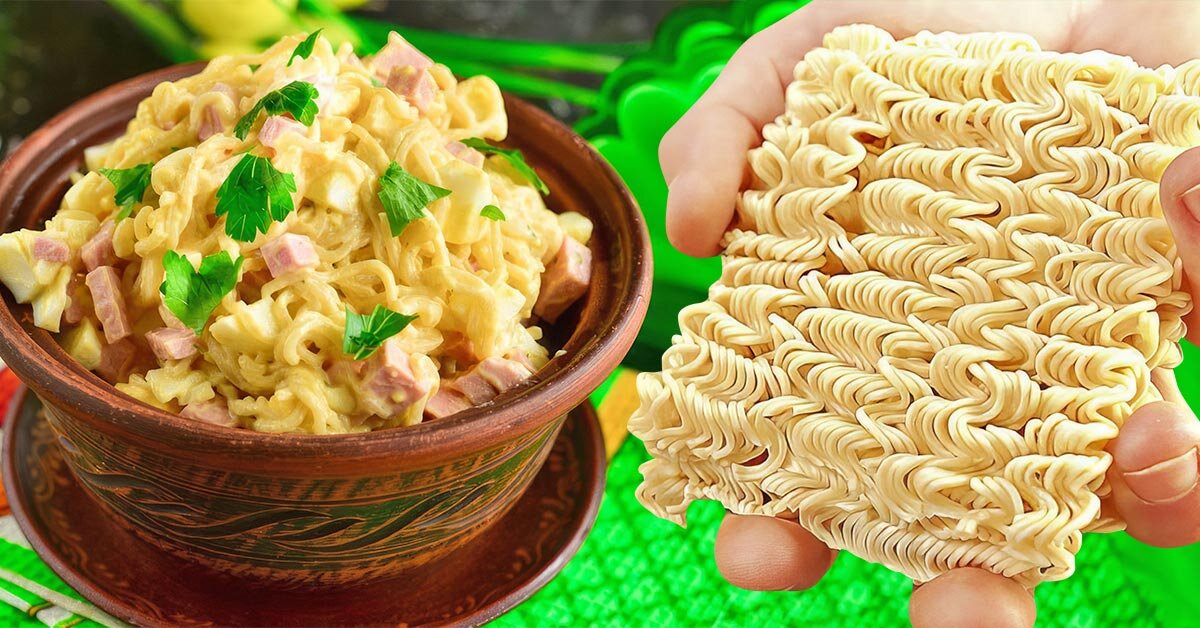 Две пачки лапши быстрого приготовления — отличная основа для сытного салата. К тому же на него нужно потратить не больше времени, чем на просмотр одного эпизода комедийного сериала. Как хорошо, что салат с лапшой быстрого приготовления суперпростой и доступный! Если вы так же сильно обожаете подобные закуски, как и мы, скорее бегите в магазин за ингредиентами для данного блюда. И помните, что приправу, которая идет в упаковке с сухой лапшой, не нужно выбрасывать. Используйте ее, доводя салат до вкуса. Как приготовить салат с лапшой быстрого приготовления Плавленый сыр, который входит в состав данного блюда, делает его вкус более нежным. Но при желании вы можете заменить этот ингредиент другим. Если у вас в холодильнике есть твердый сыр, можете использовать его. Он не выпадет из общей картины. Ингредиенты Приготовление ; ; ; ; Отправьте салат на 30–40 минут в холодильник, чтобы все ингредиенты смогли «пожениться». Затем переложите его в красивую тарелку или в пиалу. Украсить закуску мож