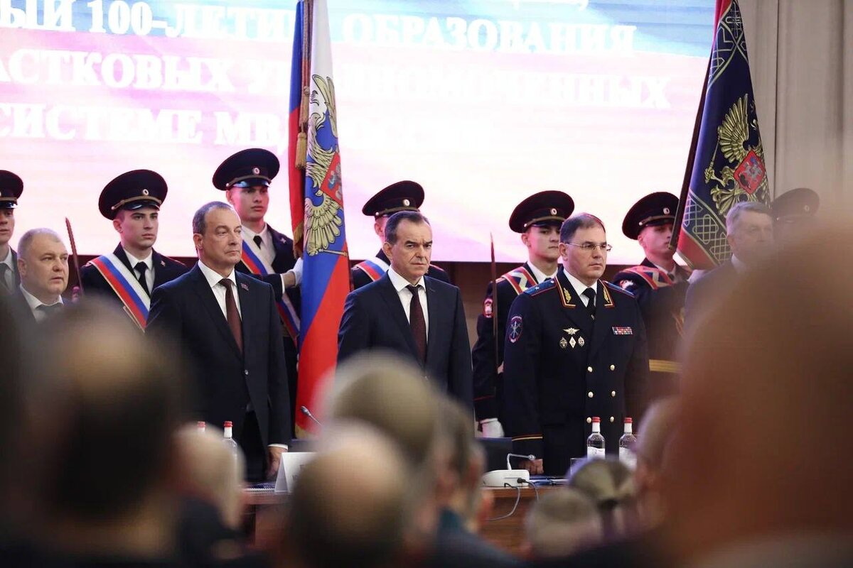В краевом центре прошло награждение и чествование сотрудников МВД. Об этом на своей странице в сети «ВКонтакте» сообщил глава Геленджика Алексей Богодистов (https://vk.com/wall710695371_4423): «Вместе с начальником Отдела МВД по Геленджику Вадимом Петровским принял участие в торжественном мероприятии. На сегодняшний день 33 участковых полиции обслуживают 37 административных участков. Благодаря профессионализму сотрудников полиции, с начала года участковые раскрыли 204 преступления. За профессионализм и многолетнюю службу медалью «За выдающийся вклад в развитие Кубани» III степени был отмечен майор полиции Владимир Фомченков. И в честь этого знаменательного события участковым уполномоченным наших округов краевое руководство передало два служебных автомобиля. Поздравляю всех причастных с профессиональным праздником и благодарю за службу!»