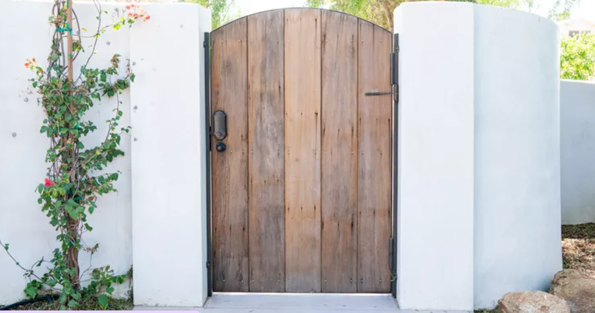 Насколько очарователен этот деревянный забор с небольшой калиткой и круглым верхом?