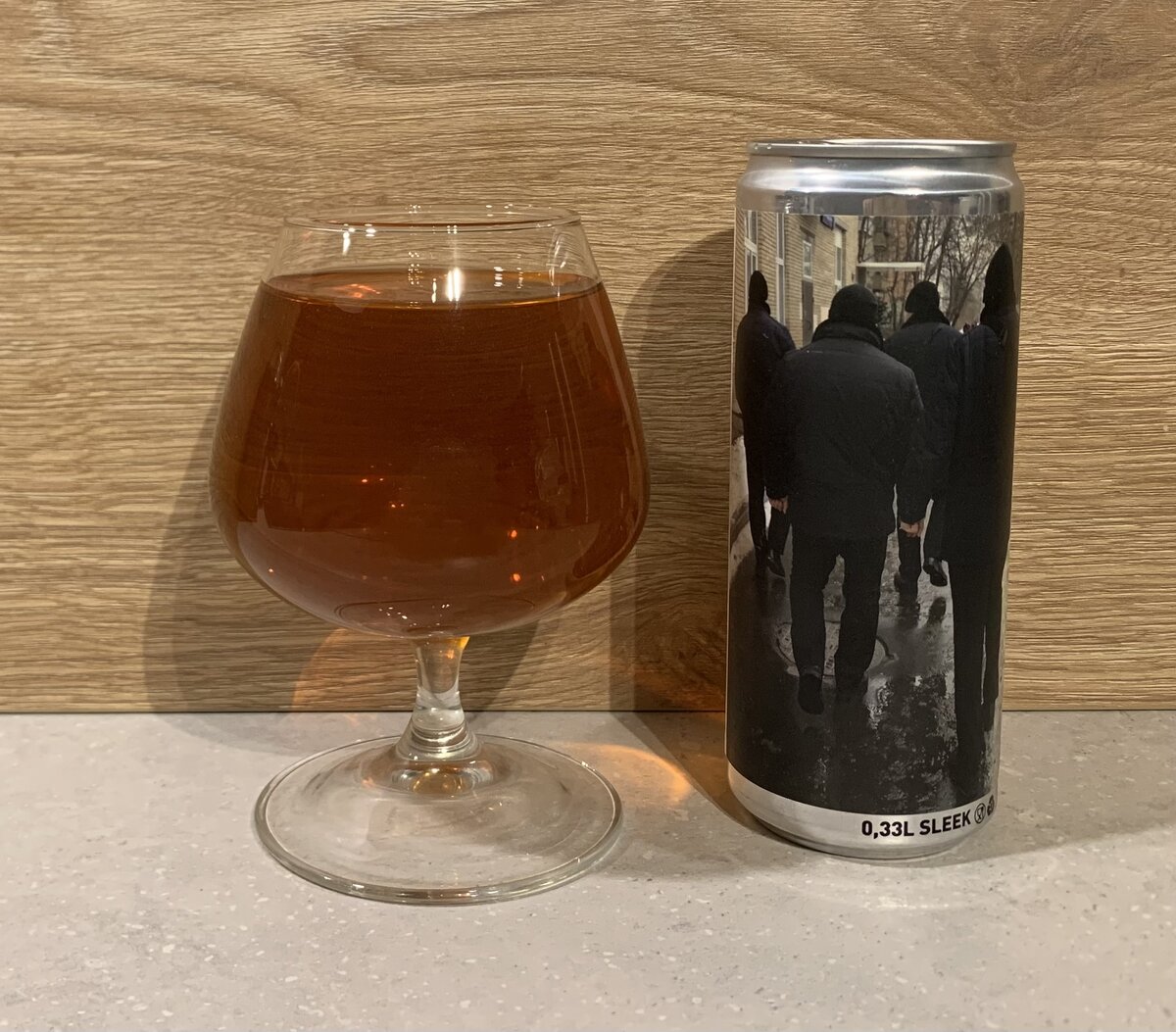 Напиток от мидерии Ta-Ta из подмосковного Королева. Оформление традиционно странное - в этот раз какие-то работяги, выходящие с работы. Сварена Nikolaych в стиле брэггот, то есть это смесь традиционной медовухи с пивом, в ее составе кроме меда, еще есть и солод, а также курага (в английском варианте smoked dried apricots).