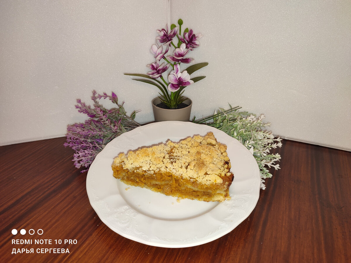 Нежная тыквенная начинка пропитала песочную крошку. Ароматные специи формируют настроение пирога - солнечное, южное