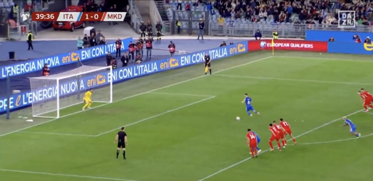Партнеры подстраховали. Италия обыграла 5:2 Северную Македонию, но могла забить еще больше – Жоржиньо не реализовал пенальти. Да-да, снова он – не забил третий подряд пенальти в сборной. На 40-й минуте (при счете 1:0) полузащитник не переиграл Столе Димитриевски – хотя начинал с фирменного прыжка перед ударом. Пробил слабо и почти по центру – вратарь даже не прыгал и спас команду. Но к этому уже, вероятно, все привыкли. За Жоржиньо результат сделал Федерико Кьеза, выстреливший дублем в конце тайма – на перерыв команды ушли при счете 3:0 в пользу Италии. Жоржиньо не везет с пенальти в сборной: его промахи лишили путевки на ЧМ Конечно, сам по себе промах Жоржиньо вряд ли бы привлек внимание, особенно при победе 5:2. Но для полузащитника, который еще недавно считался безошибочным пенальтистом, это уже неприятная тенденция. В квалификации ЧМ-2022 Жоржиньо выдал дубль из промахов с пенальти в матчах против Швейцарии. Первый случился на выезде в сентябре 2021-го: на 53-й минуте Жоржиньо не п