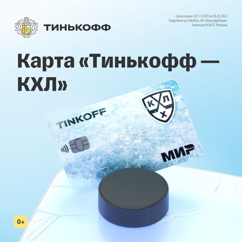 Тинькофф карта КХЛ. Недавно Тинькофф стал генеральным партнером Континентальной хоккейной лиги. По такому случаю мы выпустили совместную дебетовую карту — «Тинькофф КХЛ» ❄ Плюсы новой карты: вернем до 500 ₽ за покупку билетов на любой матч чемпионата КХЛ, если у вас еще нет карты Tinkoff Black. Минусы: несмотря на дизайн, карта не работает, если баланс ниже нуля. 👋 Чтобы получить карту, оформите заявку по ссылке 👉оформить👈 Действующая акция: Тинькофф Банк дарит 3 месяца подписки Tinkoff Pro бесплатно. Сроки - до 31.12.2023 Tinkoff Black- главная дебетовая карта Тинькофф, с кэшбэком в рублях и процентом на остаток. Универсальна для получения зарплаты, пособий, пенсий, оплаты повседневных покупок и решения финансовых задач. Условия по карте: • Кэшбэк в рублях — до 30% по спецпредложениям от партнеров;