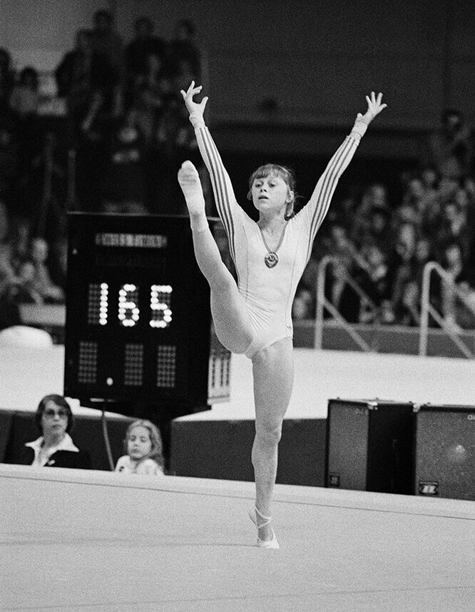У Елены было множество успешных конкуренток. Несмотря на череду побед советских спортсменов, пьедестал однажды заняла румынская гимнастка Надя Команечи. Она была неподражаемой! Она стала абсолютной чемпионкой Европы 1975 года и взяла пять медалей на Олимпиаде в 1976 в Монреале, три из которых — золотые. Она победила на всех снарядах, и первая в гимнастике удостоилась высшего балла 10.0. Команечи была непобедима.