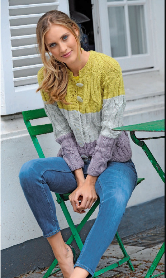 В этой подборке пять моделей кардиганов, при вязании которых использованы узоры с мотивами из кос и жгутов. Красивые вертикальные узоры плюс удлиненные модели - таким образом достигается визуальный эффект стройности фигуры, ну а про стиль и красоту моделей с узором из кос сказано много, повторятся не будем. Первый кардиган. Вывязан не просто узором из кос, но еще и модными цветными блоками. Горловина, планки застежки, низ кардигана и рукавов - платочная вязка. Застежка на красивые декоративные пуговицы. Рукава-реглан. Можно попробовать связать такую модель в одном цвете: получится совсем другая история. Размеры по выкройке с 36 по 42-ой европейский. Самая простая модель кардигана будет смотреться совсем иначе, если обвязать края бортов косами. И красивый декоративный элемент, и укрепление краев, чтобы не вытягивались при носке. Добавьте немного другого подходящего цвета на рукавах - и превосходный кардиган украсит свою хозяйку и сохранит тепло прохладными осенними днями. Обратите вни