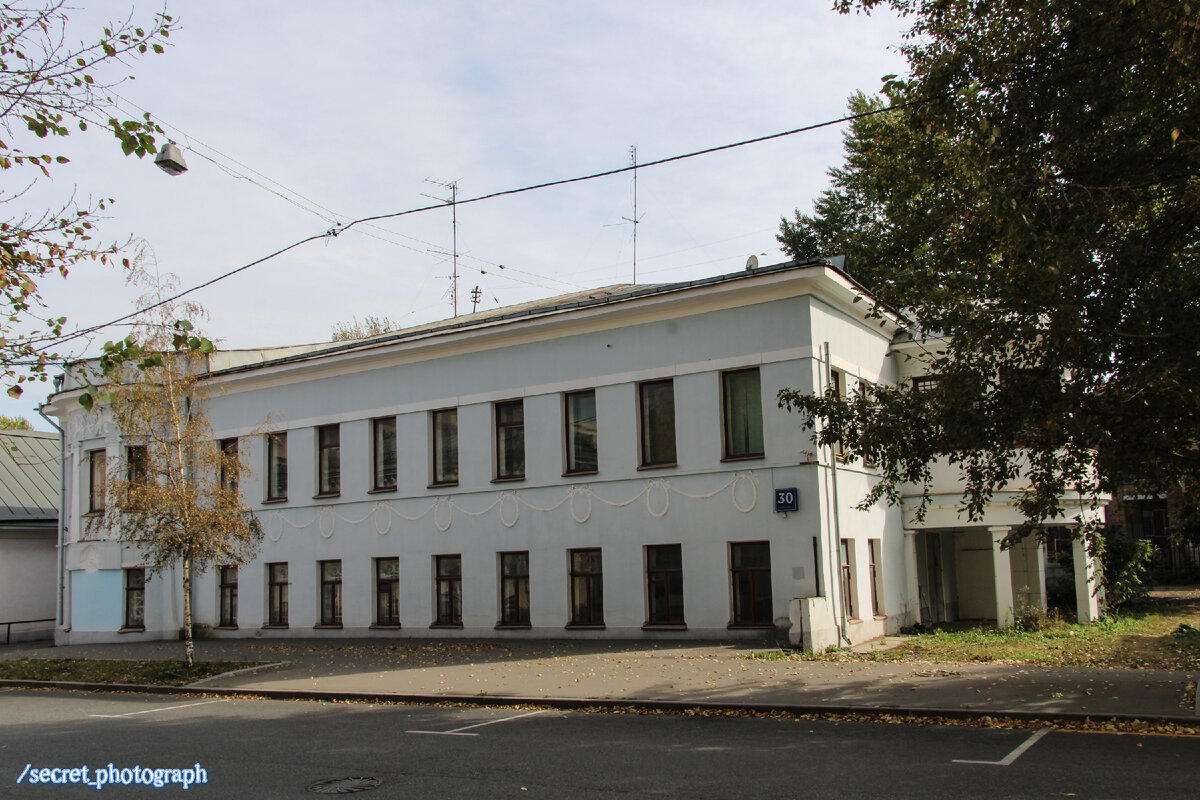 А это один из моих самых любимых домов в Алексеевской слободе. Его я каждый раз показываю всем своим друзьям, кого привожу сюда на прогулки. Привлекательно в нем все: и необычные очертания дома, и угловая башенка-эркер, и симпатичный балкончик с торца, и его лепное оформление, и сочетание нежно-голубого и белого. Его построили в 1810 году для купца Дениса Никифорова, который передал имение по наследству своему сыну Никите Денисовичу. Собственно, усадьба принадлежала семейству Никифоровых вплоть до 1899 года, а затем перешло в руки новых владельцев (3 фото). В 1911-м дом перестроили, придав ему сегодняшний облик (7 фото). Архитектором, трудившимся над его перестройкой в стиле модерн, был Владимир Викторович Иордан – талантливый художник и мастер интерьеров, один из помощников Федора Осиповича Шехтеля. Еще одна из его значимых работ, которую я упоминал в своих старых заметках – внутренняя отделка храма Успения Богородицы в Печатниках (один из двух храмов, что упоминается в связи с созда