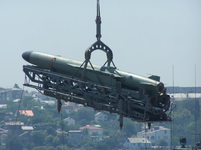 Противокорабельная ракета П-120 Малахит ( 4К85 ) на подвеске крана
