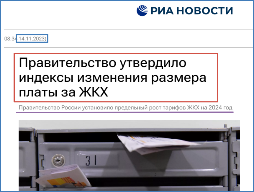 "Правительство России утвердило средние индексы изменения размера платы за услуги ЖКХ на 2024–2028 годы по регионам и предельно допустимые отклонения от этих величин по отдельным муниципальным образованиям." - ТАСС.