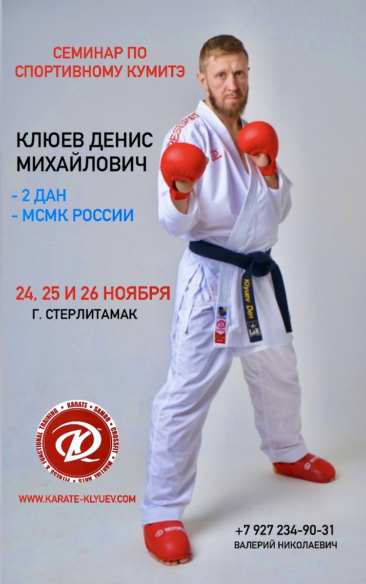 24-26 ноября в Башкортостане, город Стерлитамак, пройдет семинар Дениса Клюева по спортивному кумитэ. Это первый семинар сэнсэя на этой земле после большого перерыва, последний раз Денис Михайлович проводил семинар для спортсменов Стерлитамака в 2019 году. Организатором семинара, как и прежде, выступил руководитель Федерации стилевого каратэ Республики Башкортостан Махновский Валерий Николаевич. Денис Клюев:“Мы давно дружим, общаемся хорошо. Но так сложилось, что последние несколько лет мы не сотрудничали. Валерий Николаевич вышел с пожеланиями продолжить сотрудничество, вновь организовал семинар, который состоится уже в следующие выходные. Состав спортсменов в Федерации стилевого каратэ Республики Башкортостан сильно изменился, я это знаю, вижу на соревнованиях ребят новых, молодых, подрастающих. Поэтому, будет с кем поработать. Надеюсь, мы после большого перерыва отработаем очень продуктивно и выйдем если не сразу, то этот семинар будет хорошим толчком, чтобы выйти на новый виток раз