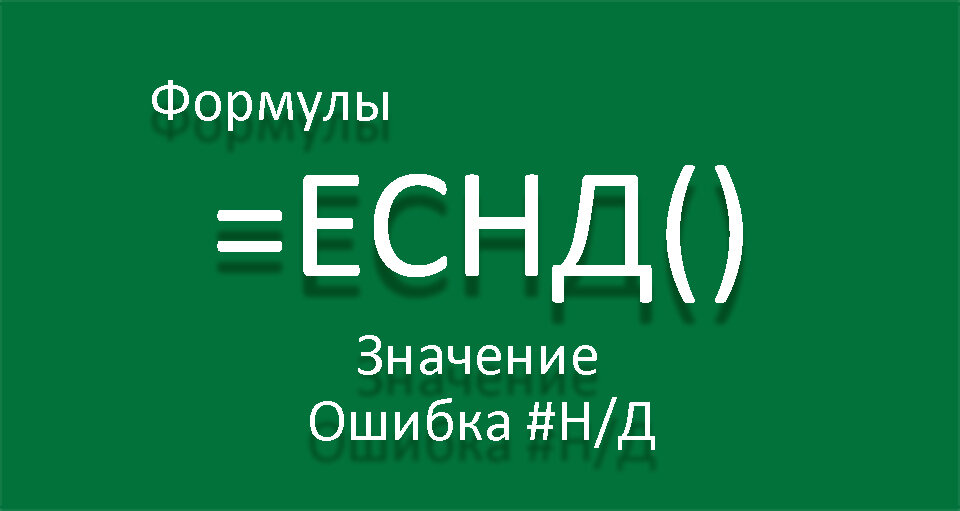 Описание из Excel: Возвращает указанное значение, если выражение дает результат #Н/Д, в противном случае возвращает результат выражения. Мое объяснение: Формула, которая обрабатывает, только один вид возвращаемой ошибки #Н/Д (нет данных), по логике использования идентична формуле ЕСЛИОШИБКА. Однако, если в аргументе значение будет возвращена ошибка отличная от #Н/Д, будет возвращена просто ошибка. Формула полезна для ситуаций когда нужно отслеживать другие виды внутренних ошибок, кроме #Н/Д. Аргументы формулы: Значение – любое значение (выражение или ссылка). значение_если_нд – любое значение (выражение или ссылка), которое будет выполнено, если первый аргумент значение вернет внутреннюю ошибку #Н/Д. Пример: =ЕСНД (5/0; «Нет данных») – результат: #ДЕЛ/0! =ЕСНД (НД(); «Нет данных») – результат: «Нет данных» НД() – формула без аргументов, возвращает ошибку #Н/Д Полезность формулы: Средняя Сложность использования: Простая