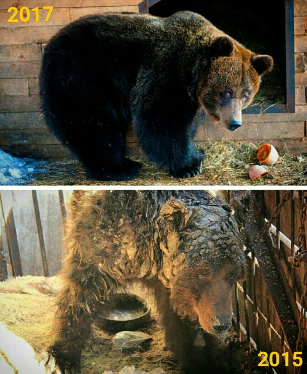 История спасения Тонечки или как наша, в прошлом самая несчастная медведица, стала счастливой