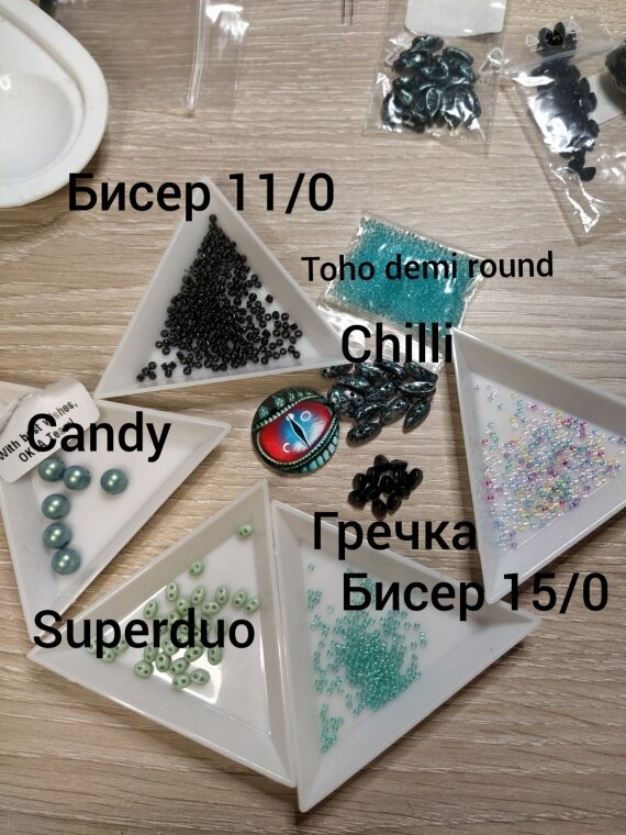 2. Бисер 11 и 15 размеров буквально пару грамм, для оплётки камня и сцепления бусин между собой.