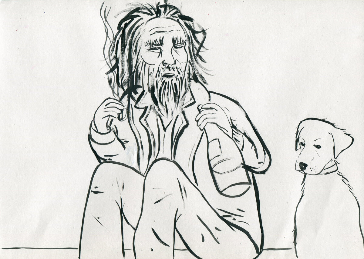 Мужчина лет шестидесяти сидел под окном дома,находящегося на перекрестке.Оживленное движение машин и пешеходов мужчина не привлекал.Люди шли,бежали по своим делам,8 часов утра по московскому времени.Сентябрь 2002 года,небольшой северный городок. Была глубокая осень,земля промерзла,но снега еще не было. Одет мужчина был далеко не по сезону,- без головного убора,в рваных спортивных с вытянутыми коленками штанах,рваный замусоленный свитер,а на ногах летние туфли с оторванными подошвами.Его грязное лицо , натруженные руки с огромными прожилками и черными ногтями создавали образ бездомного человека. Женщина с соседнего дома повела внука в детсад, мельком глянула на мужчину,сидевшего на земле с опущенной головой ....У прохожих, бегущих по своим делам он ничего не просил. Просто сидел.....А прохожим было просто не интересно...... Женщина ходила по магазинам покупая продукты,зашла в гости к своей сестре,- попила чай,поговорила и пошла домой. Мужчина сидел в той же позе,а мимо шли люди,ехали