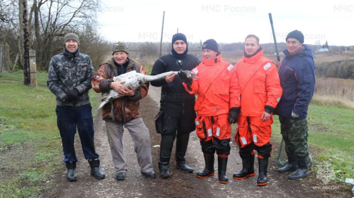 В Тульской области в селе Большое Огарево прошла необычная спасательная операция. Водолазы МЧС и местные жители спасли от гибели молодого лебедя.