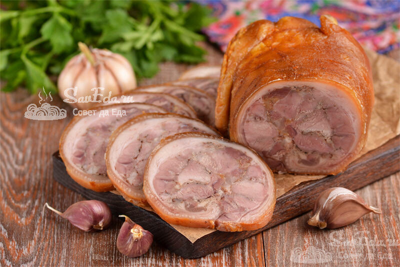 Для такого деликатеса не нужны дорогие куски мяса и времени на его приготовление много не потребуется (не надо ждать сутками). Готовится он очень легко и из небольшого количества простых продуктов. Потребуются чеснок, специи и свиная рулька. Рулет прекрасно держит форму (не раваливается при нарезке), у него красивый разрез, отлично подходит для мясной нарезки и приготовления бутербродов. Рулет нежный, очень ароматный и вкусный. Порции 5-6 Время подготовки 3,5 часа Время приготовления 2,5 часа Ингредиенты Инструкции 1. Для приготовления рулета выбираем мясистую рульку. Хорошо ее промываем и просушиваем. Определяем сторону, где ближе всего к коже расположена кость и делаем глубокий разрез острым ножом. 2. Подрезаем мясо по большой кости и оголяем ее. Вырезаем кость и получаем пласт. Он имеет разную толщину. 3. Срезаем все жилы, отрезаем толстые кусочки мяса, чтобы пласт получился одинаковым по толщине. Оставшееся мясо на коже подрезаем ножом. 4. Отрезанные кусочки мяса хорошо отбиваем мо