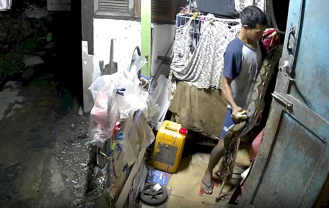 Волнительные моменты из жизни домашнего питомца были запечатлены камерой безопасности, установленной во дворе частного жилища, расположенного в окрестности Бангкока.