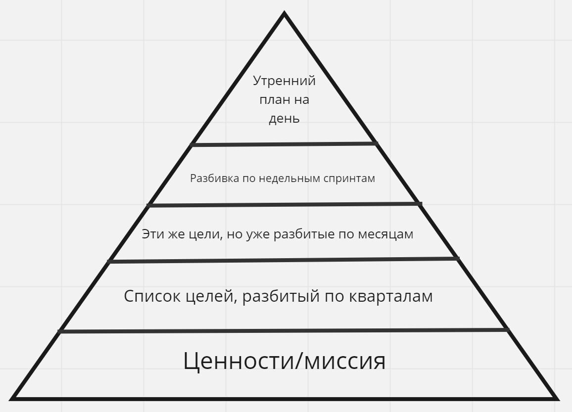 Стратегическое планирование - это планирование с переходом от глобального к меньшему/частному. Конкретнее: Исходя из ценностей и миссии прописываешь цели на квартал, затем на месяц, потом переводишь в еженедельные спринты, и в конце концов это приводит тебя к плану на день, где ты четко понимаешь, зачем ты этого делаешь и ради чего. Это помогает расширить рамки мышления и наметить себе такой маяк на 1 год. Состоит из 5 шагов. Приведу свой пример. Шаг 1. Ценности Развитие, семья и оставить после себя наследие (книга, сообщество). Очень важно, чтобы это были именно твои ценности, а не навязанные квартиры/машины например. Мне эта история с машинами и квартира вообще не зашла. Шаг 2. Цель на квартал Январь-Март : Собрать систему, которая будет мне приносить 300.000р в месяц при затратах 2 часа в день. Это даст мне ресурсы для других целей, которые стоят у меня на этот год. Шаг 3. Цель на месяц Январь Задачи: - перенести все новые проекты в Tick-Tick - ввести в кома