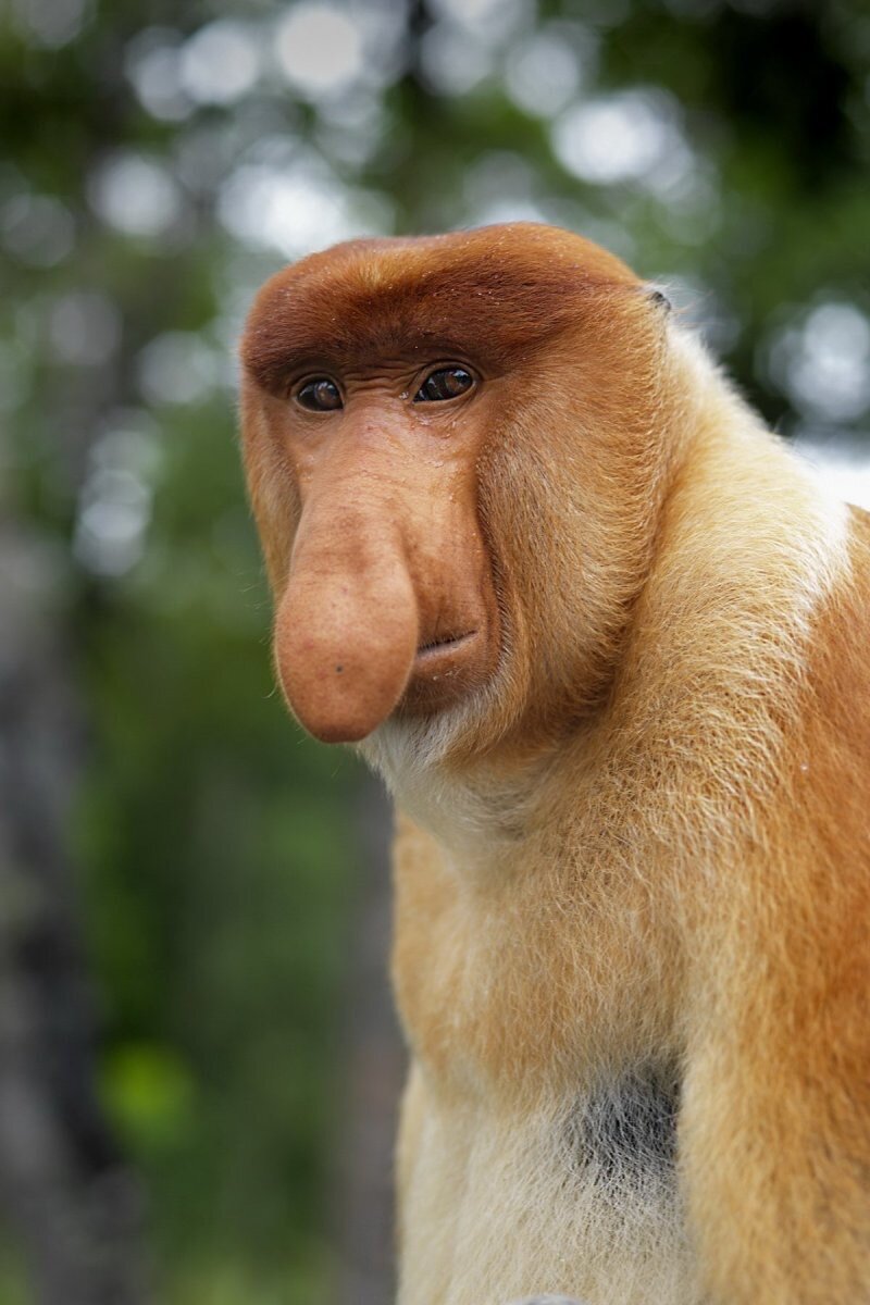 Кахау или носач - очень редкий, и к тому же эндемичный вид, который однако благодаря своей очень характерной особенности стал самым узнаваемым приматом в мире. Носач (лат. Nasalis larvatus) — это примат, относящийся к семейству мартышковых тонкотелых обезьян. Является эндемиком острова Борнео (он же Калимантан), где распространен исключительно в прибрежных регионах и долинах. Даже при беглом взгляде на кахау в глаза сразу бросается необыкновенно крупный нос, похожий на сплюснутый огурец. Большой нос - исключительная "прерогатива" самцов, нос самок отличатся кардинально как размерами так и формой. Интересно, что истинное предназначение столь крупного носа не установлено и сегодня. По одной из версий, он служит для сексуальной привлекательности самца.