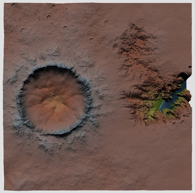 На прошлой неделе была выполнена установка, теперь пришло время второго шага: создания рельефа. В данном проекте это довольно просто. Большой кратер, огромный глубокий каньон и необходимое окружение. Кусок суровой местности в 30 миль в поперечнике, который выглядит еще более бесплодным без соответствующих цветов и текстур. То, что вы видите здесь, - это один из наборов цветов высот, которые я использую при проектировании местности. Для этой местности я использую пять различных типов рельефа плюс случайно разбросанные небольшие кратеры и один тип, на который вручную нанесена дополнительная эрозия. Будущие проекты могут быть в разы больше, в моем проекте Мидгард используется 12 плюс 10 специальных дополнительных возможностей. Есть еще несколько особенностей, которые я хотела бы добавить к этой местности, но я повременю с ними. Следующим шагом будет создание модели рельефа и придание ей соответствующего вида с помощью цветов и текстур. Подробнее об этом в ближайшее время! Вконтакте Anna B