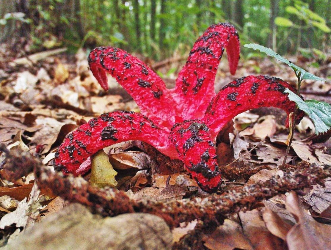 Пальцы дьявола — своеобразный гриб с характерным внешним видом. Его еще называют «лесным осьминогом» или «шутовской шапкой». Это несъедобный гриб, но он не ядовит, считается очень полезным для экосистемы и в некоторых странах охраняется. В начале созревания он выглядит довольно невзрачно, но когда его плодовое тело раскрывается, зрелище поистине необычное. Гуляя по лесу в поисках известных видов съедобных грибов, трудно не пропустить этот характерный экземпляр. Вы даже можете спутать его с каким-нибудь крупным насекомым и и изрядно испугаться. Трудно поверить, что это гриб! Выглядит он совершенно иначе, чем маслята или подберезовики. Вместо типичной шляпки на ножке у него разветвляющиеся по бокам «щупальца», которые сразу ассоциируются с осьминогом. Многие сравнивают внешний вид этого своеобразного гриба с шутовской шляпой, известной, например, по картине Яна Матейко. Достигает максимальной высоты 15 см. Во взрослом состоянии он принимает форму морской звезды с 4-6 руками и красно-кор