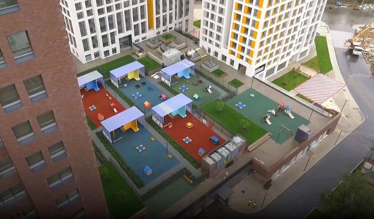 С учетом отсутствия незастроенных частей земельного участка конструктивно такие жилые комплексы проектируются таким образом, что дворовая территория жилого комплекса, включая элементы озеленения, благоустройства, а также объекты коммунальной и социальной инфраструктуры, располагаются на эксплуатируемой кровле подземной автостоянки (стилобате*).