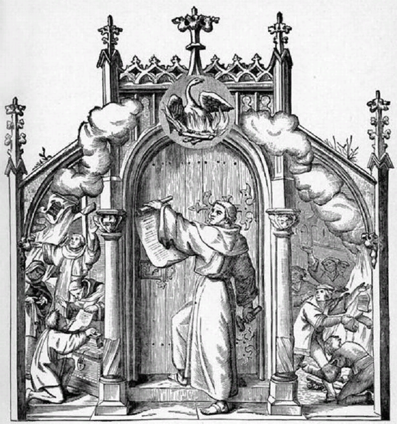 В 1517 году 34-летний монах-августинец, профессор теологии Виттенбергского университета Мартин Лютер прибил к дверям Замковой церкви свои знаменитые 95 тезисов. «Когда я сердит, я могу хорошо проповедовать», — однажды заметил он. Во время написания своих тезисов Мартин Лютер был очень сердит на католическую церковь — за бессовестную торговлю индульгенциями, за повсеместное и ежедневное нарушение всех заветов основателя христианства. Свою миссию он видел в том, чтобы освободить учение Христа от «главарей разврата, этих кардиналов, пап и всей своры римского Содома». Словом, обращение к христианской публике получилось что надо.