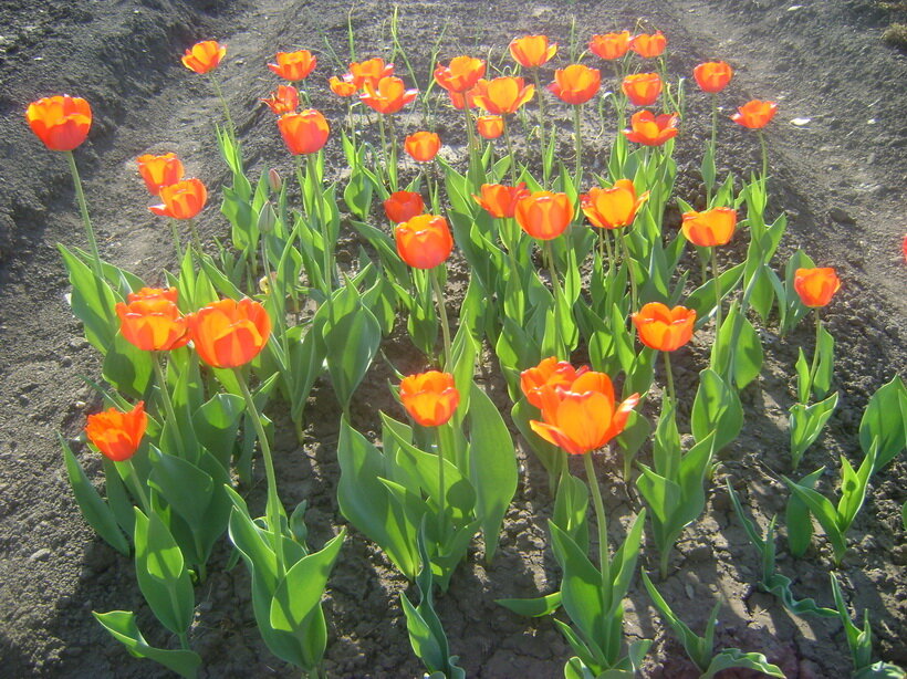 Тюльпаны сажают осенью, когда температура почвы достигает 6-8 градусов. Оптимальное время для посадки тюльпанов с 20 чисел сентября по конец октября. Но для каждого региона время посадки тюльпанов может разниться. В средней полосе – конец сентября - начало октября, в теплых регионах можно отложить время посадки до конца октября. Сажать тюльпаны нужно обязательно на солнце. Для закладки цветочных почек тюльпанам требуется температура не менее 20 градусов в течении 20 дней. И если растение посадить в тени, то почва может не прогреться до нужной температуры. В результате, тюльпан даст большой лист, а цветоноса не будет. Растение вытягивается вверх, а луковичка мельчает. Выбирая место для посадки тюльпанов, отдайте предпочтение участкам, защищенным от сильных ветров. Кроме этого нужно помнить, что тюльпаны не любят тяжелых и переувлажненных почв. Эти цветы предпочитают легкую супесчаную почву и не выносят застоев воды. Заранее взрыхлите землю на грядке предназначенной для посадки цветов. Е