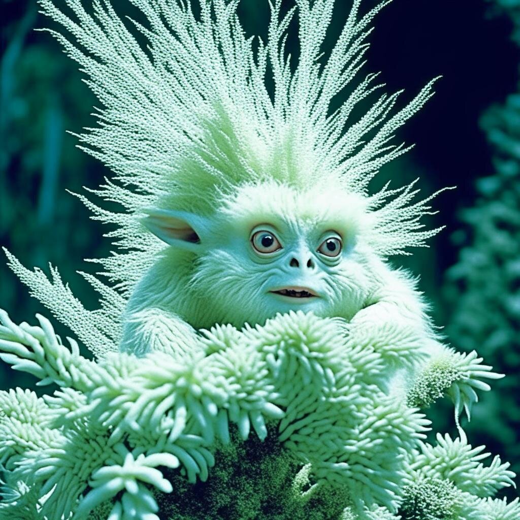 Плаваю туда -сюда , не зная куда . Ищу то не зная что. Может ну её - эту " Влагу"? Замечаю какой то кипишь у дна . Стайка мелкой разношерстной рыбешки нападает на какое то - то ли растение , то ли коралл .И тут же по одной отлетают от этого коралла , как будто их кто то пинает ногой , как меня когда то пьяный большой самец Человек . Но у коралла этого нет ни рук ни ног , и вообще он не двигается. Ну вот " ни чешуи себе" как он попал в параллельные миры планеты Земля? Подплываю ближе . Стайка этих рыбешек -вегетарианцев , увидев меня опасного хищника кинулась в рассыпную. Передо мной какое то зелёное подводное растение , в центре которого явно видна голова с большими заострёнными ушами , торчащими в разные стороны. Что это за гибрид животного и растения ? Прямо как в мире деревьев . Услышал я голос в своей рыбьей голове. Нет не в сознании , где "зеркальце", а именно в рыбьем мозгу. - Меня интересует многое - пробулькав ,решил я не упускать возможности получить какую нибудь информ