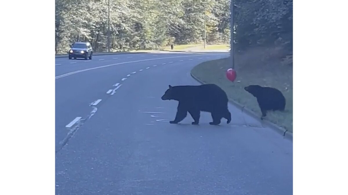 Медведи устроили пробку на дороге, чтобы поиграть с шариком