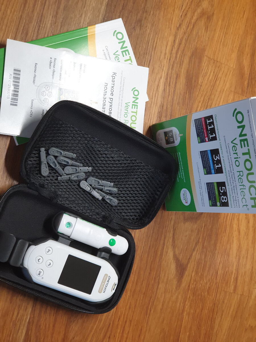 Хочу рассказать о глюкометре от OneTouch - Verio Reflect Представляем вам новый глюкометр OneTouch Verio Reflect® — глюкометр, который Вам улыбается и на русском языке! (Производитель) Давайте начнем нашу распаковку. Итак вместе, непосредственно глюкометром, в коробке мы получаем: Обратите внимание, что в комплекте поставки нет тест-полосок. Обычно производители комплектуют стартовый набор небольшим количеством тест-полосок (обычно 10 штук). Тест-полоски нужно докупить. Обратите внимание, что для этого глюкометра подходят только свои тест-полоски. Глюкометр OneTouch Verio Reflect® используется с тест-полосками OneTouch Verio® Стоимость полосок соответствует средней по рынку на аналогичные и составляет порядка 1000 рублей за 50 штук. Ручка-прокалыватель Прокалыватели от OneTouch всегда были достаточно удачны. Входящий в комплект прокалыватель тоже достаточно удобный. Прокол делает четко и практически безболезненно. На мой взгляд, это один из самых лучших прокалывателей. Глубина проко