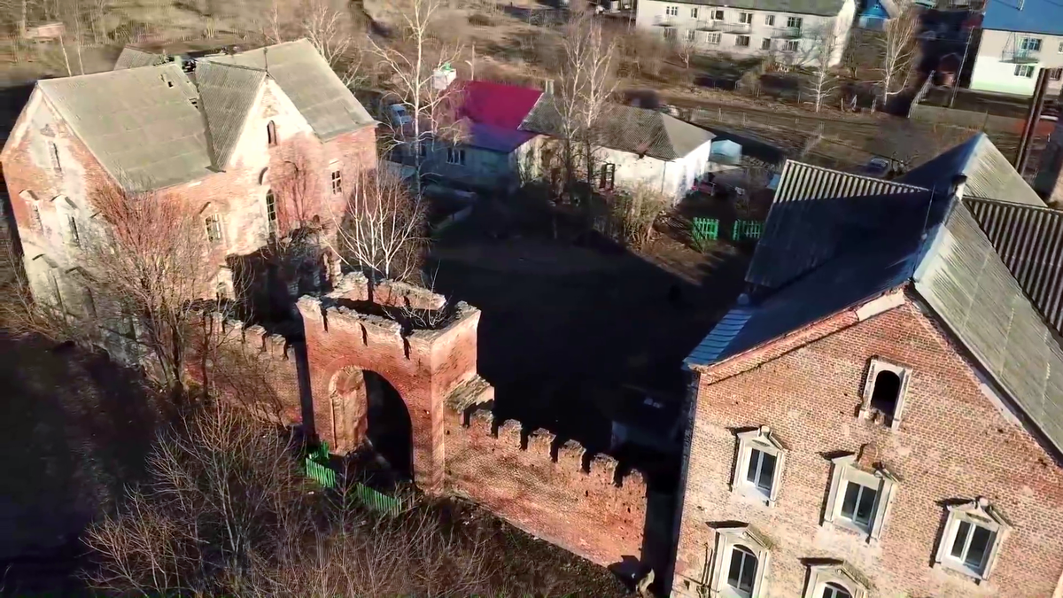 Вскоре мы приехали к замку. Было видно, что поместье разрушается с каждым годом все больше и больше. На сегодняшний день сохранились уникальные въездные ворота, башня и 2 здания, соединенные массивной стеной. Складывается впечатление, что задумкой было построить свой небольшой Кремль.