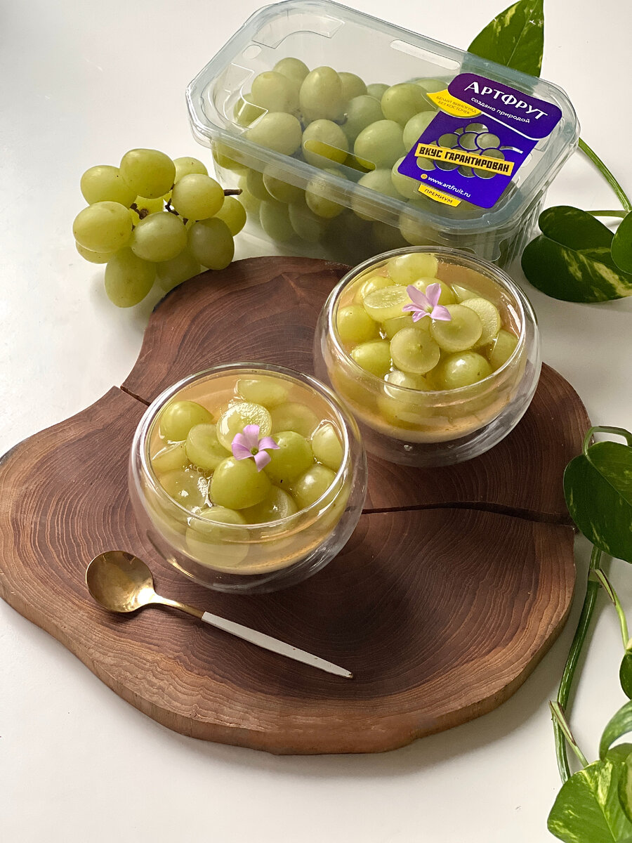 Да, друзья, это рецепт сливочно-нежной жасминовой панна-котты с ярким (как воспоминания о лете) виноградным желе. Виноград берем Артфрут, ведь, помимо незабываемого вкуса, еще одно его достоинство будет как нельзя кстати для этого рецепта, а именно: в нем ноль косточек. Купить его можно в супермаркете у вашего дома или заказать на маркетплейсе. Ингредиенты:
