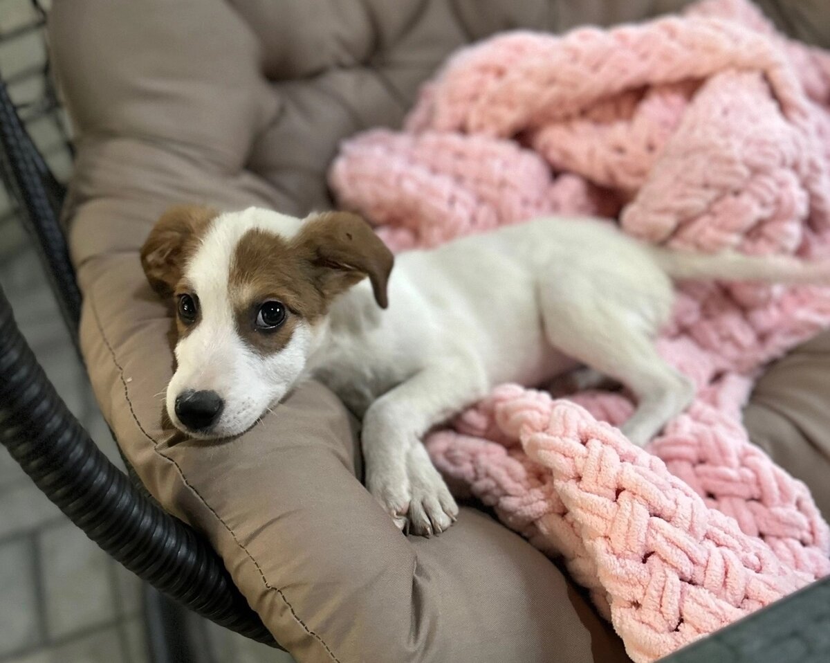 Робкий и нежный щенок,который за свою коротенькую жизнь понял что такое человеческая жестокость. Его маму,будучи беременной,выкинули на мусорник как ненужную вещь, спасаясь от войны😞 Он и его братья родились не в теплой квартире, а под обстрелами в посадке. Их обижали, таскали на шнурке по проезжей части, кормили костями. Все семейство было спасено и уже обрело дома, остался лишь самый маленький Соник.