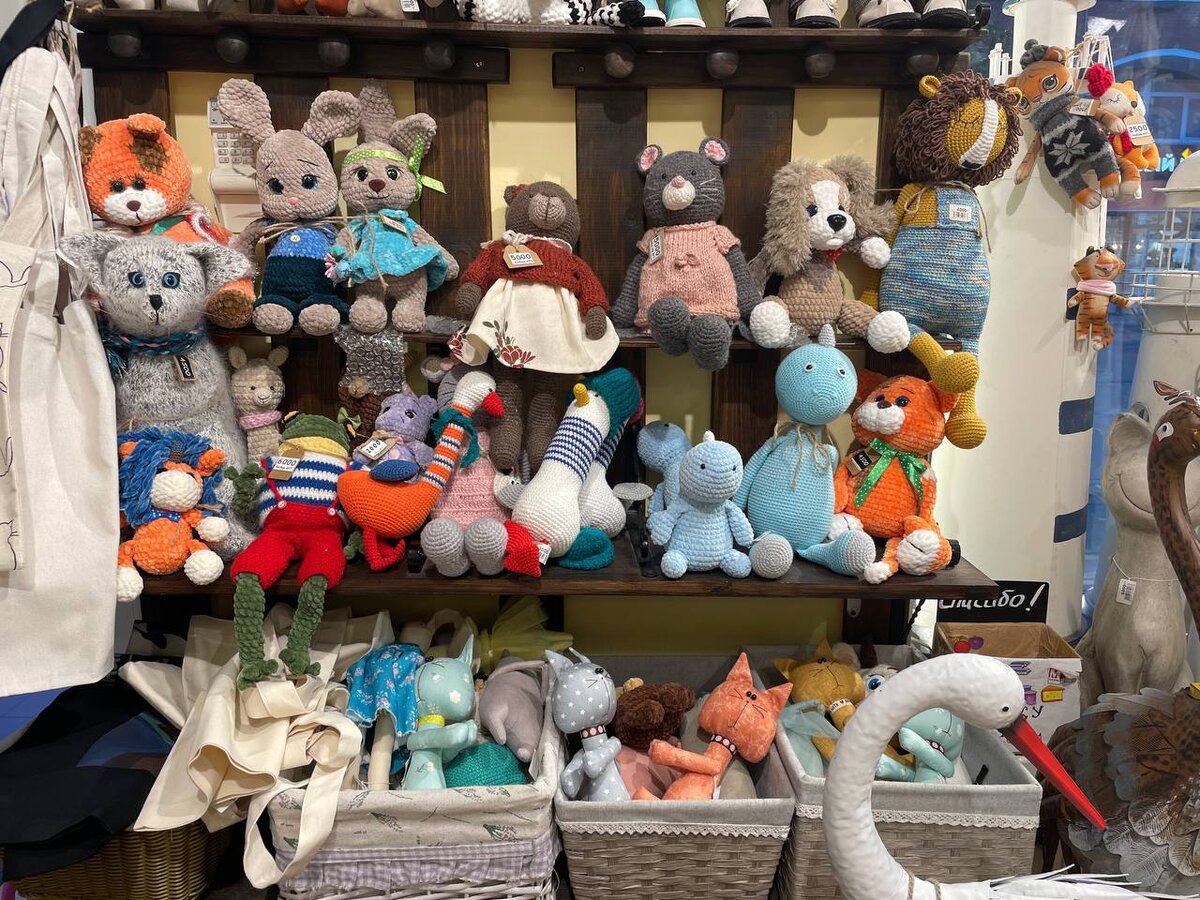 Не скажу, что я объездила всю нашу необъятную страну, но точно много где бывала. Конечно, во всех регионах есть свои мастерицы и даже свои рукодельные «фишки». Но то, в каком количестве продают вязаные и сшитые своими руками вещи в Калининграде, заслуживает именно такого определения. Именно продают: понятно, что шьют и вяжут везде. Я уже писала статью: Одевали ли вы хомлина? И поразилась, так как нигде больше такого не видела: одевать железных фигурок, это надо додуматься, как говорится. Вязаные вещи и игрушки в магазинчиках Хендмейд здесь повсюду! Я больше обращала внимание именно на вязаные вещи, так как сама предпочитаю этот вид рукоделия. Продают вязаные игрушки, панамы, корзины и сумки, коврики, носки, шапки. Где было возможно, я захватывала и цены, чтобы мои читательницы в которых раз убедились, что вещи ручной работы стоят недешево. И, может быть, тоже начали продавать. Конечно, договориться с магазином в туристическом городе – та еще удача. А, возможно, именно владелица или сот