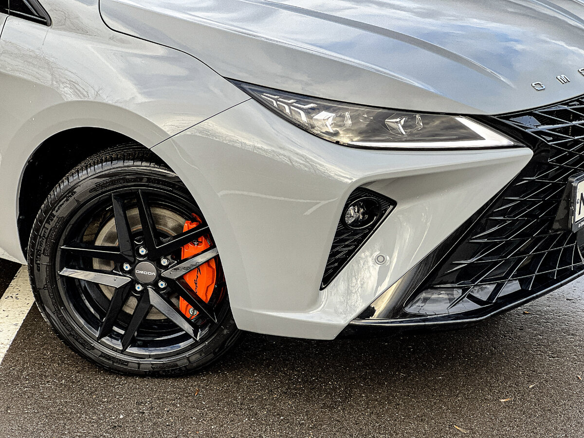 Вот полный обзор: А вам нравятся «горячие» модели? За приставкой GT - оказалась совсем другой машиной: другой мотор, другой салон, другая морда и комфорт. Это я к тому, что если сравнить Lada Granta и Lada Granta Sportline, то - отличия минимальные. В чем разница? Снаружи GT (гран-туризм) - заявка на быстрое перемещение во времени и пространстве. Выводя модель GT производитель решится на внедрение другого обвеса. Здесь другой бампер, другая решетка радиатора, а также другой капот и другие фары. И внедрить это - реально дорого, но при этом реально круто. Теперь, когда едешь по дороге, всем видно, что у тебя GT, а не обычная ОМОДА S5, и за это Omode надо сказать спасибо, что они настолько дотошно прорабатывают сейчас свои машины. Сзади - отличий поменьше, здесь всего иная накладка на бампере, но тоже понятно, что перед нами GT. На кузове много черного декора, красивые 17-дюймовые диски. И только слепой не заметит, что за этими дисками скрываются оранжевого цвета суппорты тормозных м