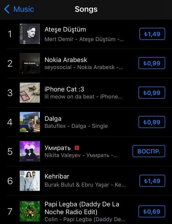 Лютейший сингл Никиты Валеева - «Умирать» вошел в топ-5 Турецкого чарта «iTunes». В чарте «Apple Music» сингл присутствует в 3-х странах мира. (Турция, Украина, Молдова). На данный момент сингл Валеева собрал в общем количестве 50,000 железных прослушиваний, пожелаем молодому исполнителю удачи и плодотворной работы в развитии музыкального контента. Послушать трек: https://band.link/umirat Поддержать материально: https://www.donationalerts.com/r/valeyevboss