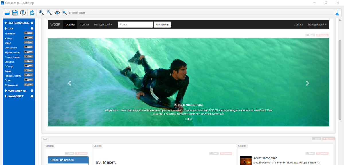 Данное расширение позволяет разработчикам быстро создавать адаптивные макеты веб-страниц с использованием популярной технологии Bootstrap. Расширение предоставляет пользователям набор готовых компонентов, таких как кнопки, формы, навигационные меню и другие элементы, которые можно легко вставлять в макет страницы. Одним из главных преимуществ WDSP Bootstrap Creator является его простота в использовании. Разработчики могут просто перетащить нужные элементы на макет страницы и настроить их свойства, такие как размеры, цвета и стили. В целом, WDSP Bootstrap Creator представляет собой полезный инструмент для веб-разработчиков, желающих ускорить процесс создания адаптивных макетов веб-страниц. Проекты макетов можно сохранять в отдельный файл для дальнейшего использования или редактирования. Экспорт кода Чтобы экспортировать код, необходимо нажать на кнопку “Экспортировать код” и в открывшемся окне выбрать нужные опции. Затем можно сохранить код в базу кода или экспортировать его в вид