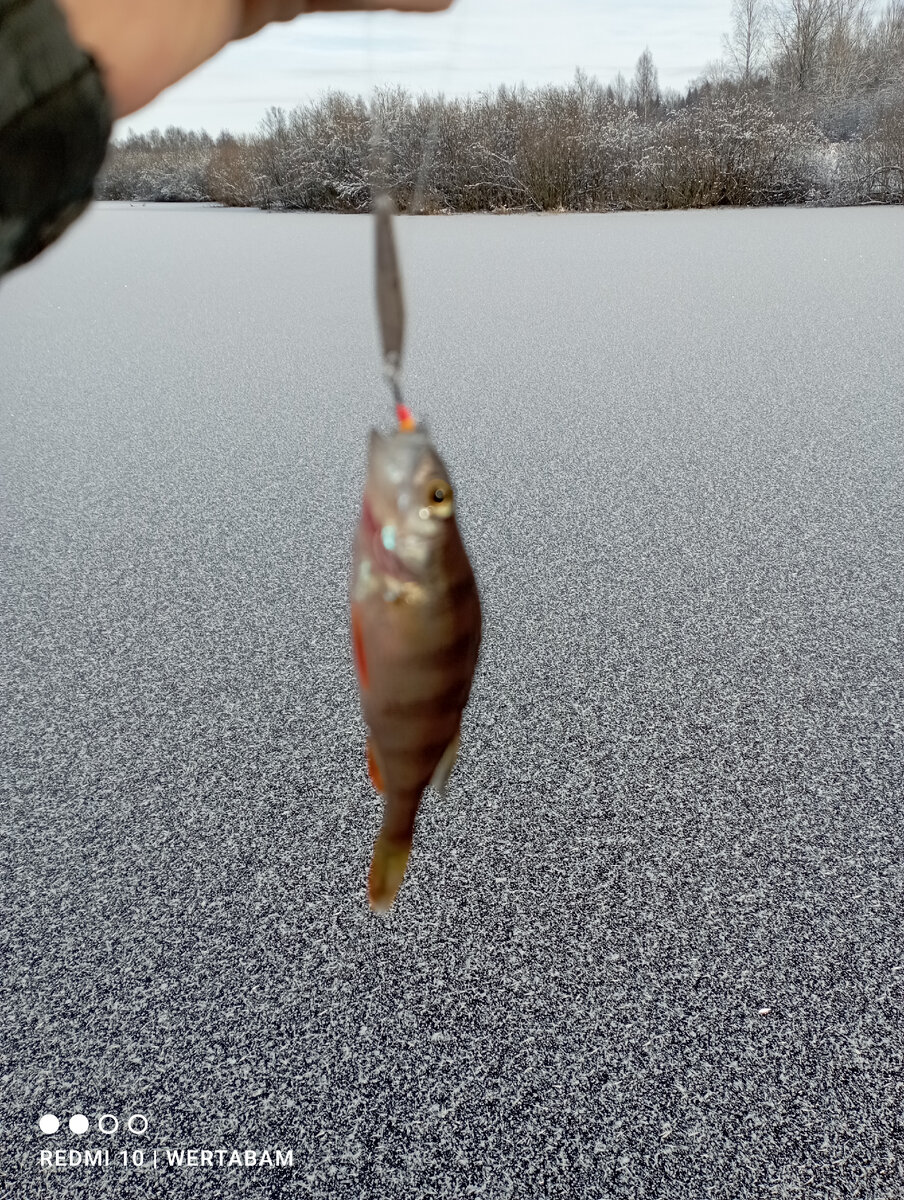 Всем привет. Четыре дня уже отстояли морозцы. Воскресенье, а работа всё не отпускала. Сегодня освободился к часу дня, приехал домой, схватил пешню, удочку, да коробку с блеснами, и поскакал на заливчик местной речки, где живут синегубики. Уж больно зазудело, думаю, если и не выйду на лëд, то хоть прогуляюсь по свежему воздуху. А лëд оказался 4 сантиметра, молчаливый и даже не прогибается. Тихонько пешней пробил дырочку не далеко от берега, опустил туда блëсенку, помахал - тишина... Отошёл поглубже, пробил вторую дырочку, лëд на удивление даже не трещит, опустил блесну и почти сразу на неё повесился синегуб. Другого я и не ожидал, в этой луже редко клюнет кто-то серьёзный. Но ощущение того, что первый лëд уже состоялся, полностью охватило истосковавшуюся по зимней рыбалке душу. Потом клюнуло ещё И ещё, и ещё... Рыба, конечно мелкая, но весело... Потом пробил третью дырку, поймал там пяток штучек, вернулся обратно - тут снова клюёт, вобщем так и ходил по этим лункам По такому ледку ст