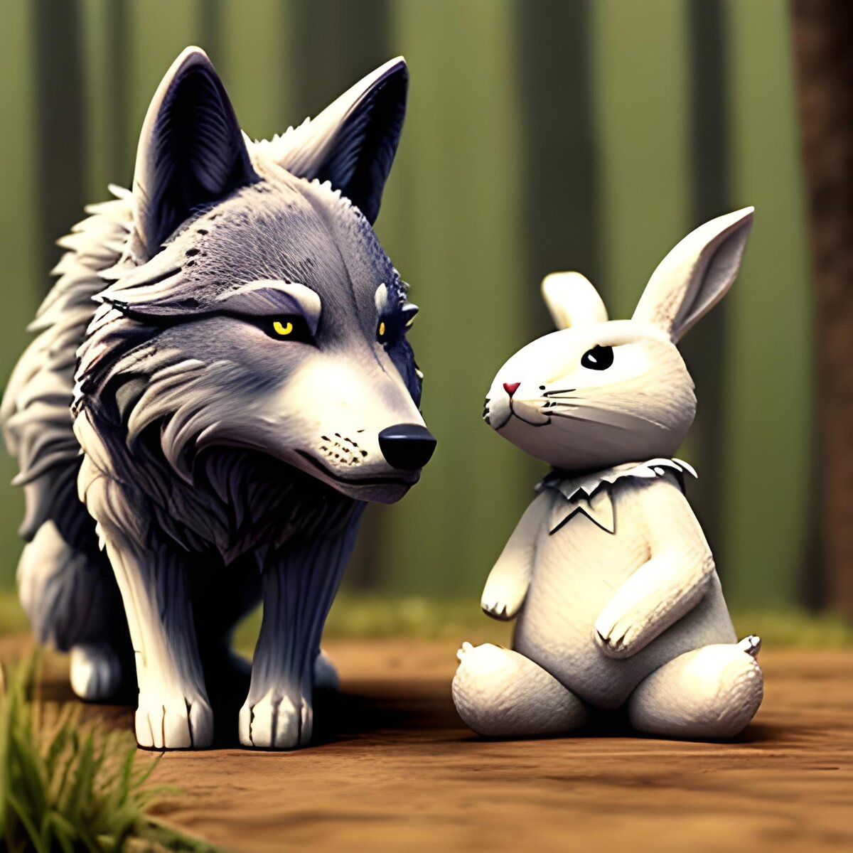 Жили-были в одном лесу Заяц и Волк. Заяц был маленьким и быстрым, а Волк - большим и хитрым. Они оба жили в лесу, но их интересы часто пересекались, так как Волк любил есть зайцев на обед. Однажды Заяц решил, что ему нужно научиться бегать быстрее, чтобы избежать зубов Волка. Он отправился на поиски волшебного гриба, который, по слухам, мог сделать его быстрее. Заяц долго искал гриб, спрашивал у всех лесных жителей, но никто не знал, где его найти. Наконец, он встретил мудрую Сову, которая сказала ему, что волшебный гриб растет только на самой высокой горе в лесу. Заяц отправился в опасное путешествие на вершину горы. Он прыгал с камня на камень, карабкался по скалам и преодолевал крутые склоны. На вершине горы Заяц нашел волшебный гриб и съел его. И тут произошло чудо - Заяц стал быстрее ветра! Вернувшись в лес, Заяц начал бегать так быстро, что Волк не мог его догнать. Волк был поражен и решил тоже съесть волшебный гриб. Но он не знал, как найти гриб, и ему пришлось спросить у Зайца.