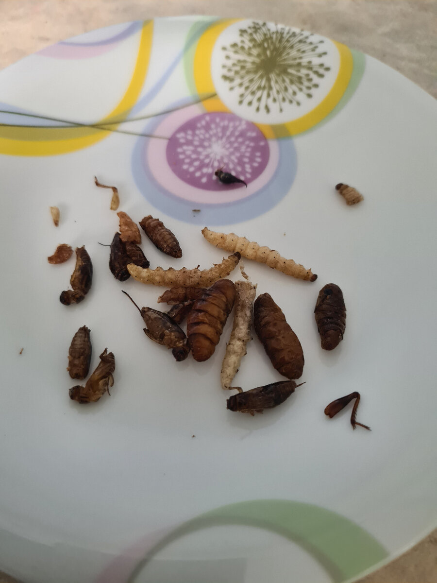 Если одним словом, то они безвкусные. Но об этом поподробнее дальше. Знакомые по моей просьбе привезли мне из Таиланда кулёк жареных насекомых (бамбуковые черви, личинки шелкопряда и саранча). Даже в Таиланде, вопреки представлениям, найти их в продаже оказалось нетривиальной задачей. На рынке на о.Пхукет была всего одна лавка, где можно было приобрести такую закуску, но фотографировать товар бесплатно было запрещено. 2 миллиарда людей на планете в том или ином виде едят насекомых, поэтому я не ждал каких-либо проблем с этим. Самый главный барьер заключается в естественном отвращении, которое мы испытываем при виде подобной пищи. Видел, что кто-то даже ел насекомых на спор с весьма высокой ставкой. Я предрассудков к насекомым не имел , поэтому с лёгкостью приступил к трапезе. Несмотря на то, что насекомые обжарены в масле с солью, вкус у них довольно пресный: я бы сказал, что он ближе всего к какому-нибудь высушенному растению, т.е. они почти безвкусные. Я, конечно, ожидал, что по вк