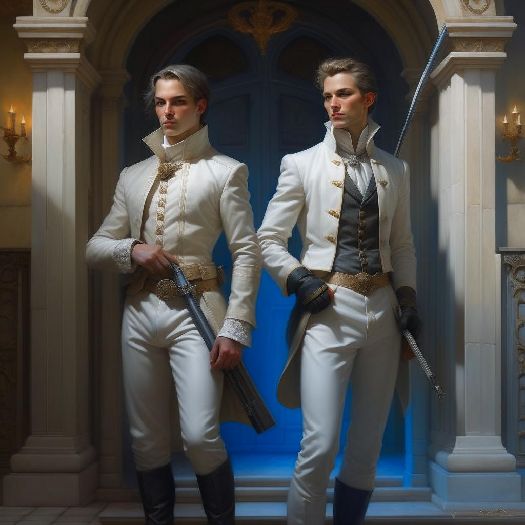 Нейросеть сделала привратников в виде каких-то киллеров-телохранителей.