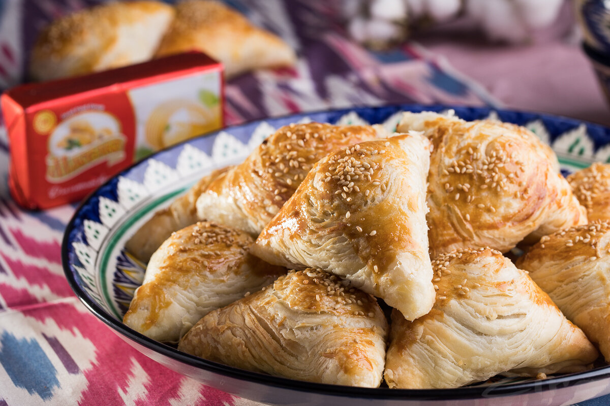 ДЛЯ ТЕСТА: 400 граммов муки 1 сорта 200 граммов маргарина для слоеного теста 130 миллилитров теплой воды 30 миллилитров растительного масла1 яйцо 1,5 чайные ложки соли1 столовая ложка 9% уксус ДЛЯ НАЧИНКИ: 400 граммов мясного фарша 400 граммов репчатого лука 100 граммов курдючного жирапо вкусу зирыпо вкусу соли и перцадля смазывания желтокдля посыпки белого кунжута