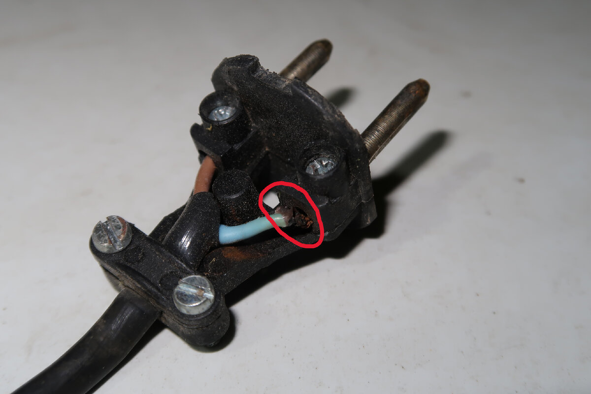 Тут мне недавно попалась на глаза вилка, у которой от неправильного подсоединения проводов, даже поплавился корпус. 👇
