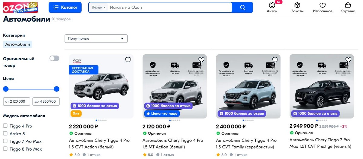 Запад и в этом от нас отстал. Amazon анонсировал интернет-продажи авто только со следующего года. А Озон уже вовсю