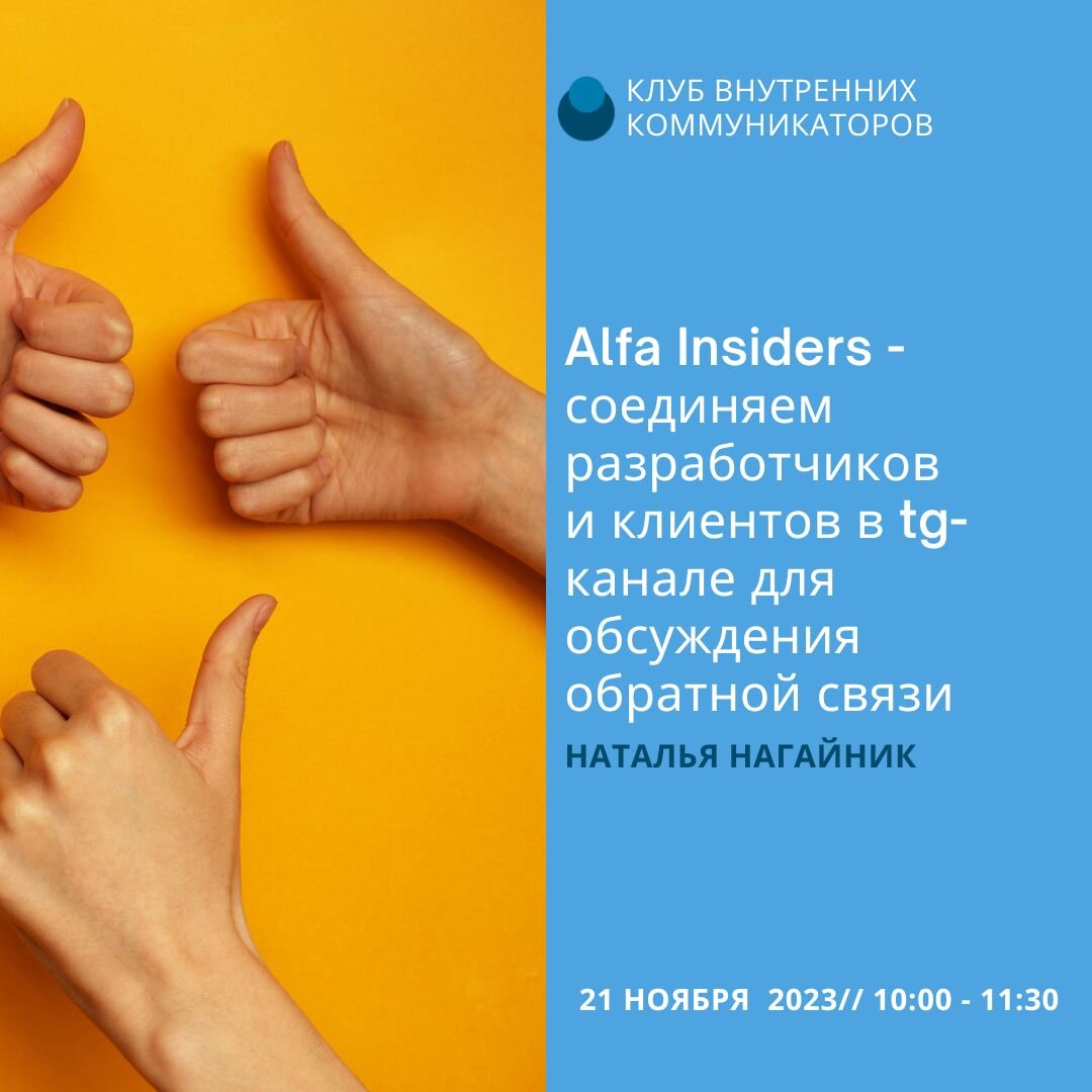 Завтра, 21 ноября, состоится вебинар "Alfa Insiders - соединяем разработчиков и клиентов в tg-канале для обсуждения обратной связи".