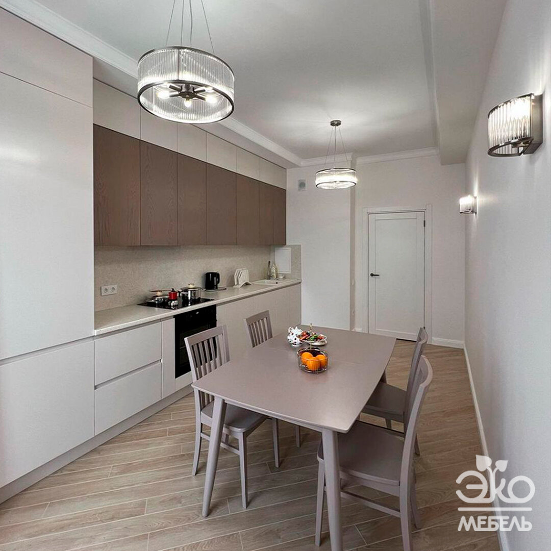 На фото новый завершенный дизайн-проект от наших официальных партнеров из Казахстана. Идеально дополнила образ кухни обеденная группа от нашей фабрики в тоне «мокко». В комплекте: стол «Самурай-2» + стулья «Комфорт». Раскрываем детали этого проекта: