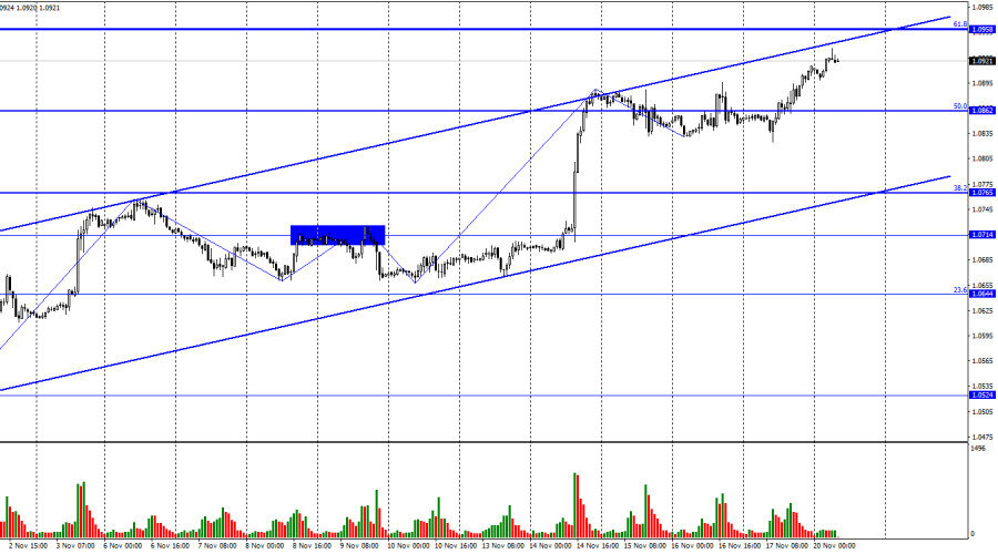 📊 Пара EUR/USD в пятницу выполнила новый разворот в пользу европейской валюты и вернулась к укреплению с закрытием над уровнем коррекции 50,0% – 1,0862. Таким образом, рост котировок может быть продолжен в направлении следующего уровня Фибо 61,8% – 1,0958.