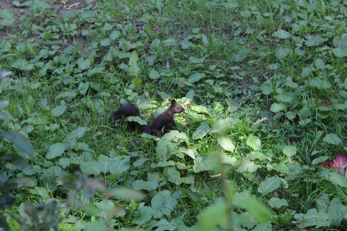 Возвращаясь с площади Победы, в парке мы видели черную белку!