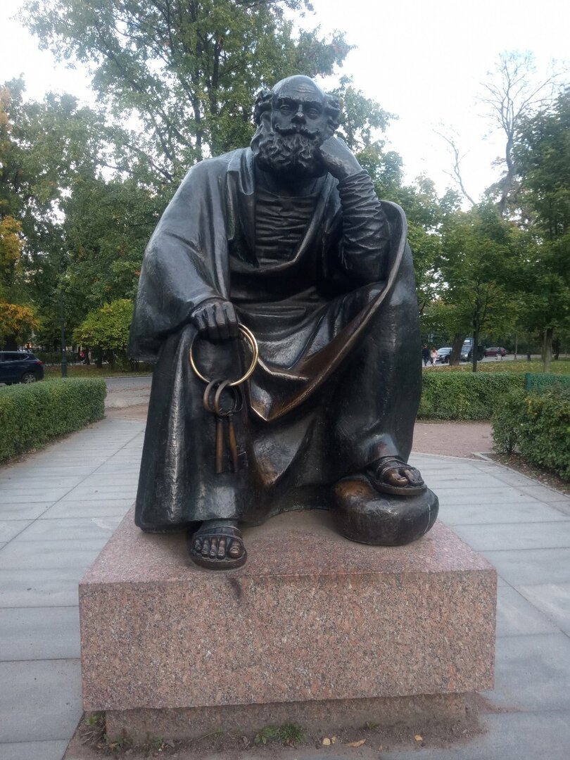 Решила вам рассказать про замечательный исторический уголок в Санкт-Петербурге у метро "Горьковская". Я его очень люблю, потому что на маленькой территории сконцентрировано разнообразие вкусов города. Пока ты идешь по Александровскому парку в мой любимый Ленинградский Зоопарк, ты проходишь и Мини-город, и театр "Балтийский дом", и Музей восковых фигур, и Планетарий, и Мюзик-Холл. Здесь просто собралась большая концентрация всего интересного и занимательного. Специально для вас пофоткала мини-Петербург. Итак, встречает нас сам святой Пётр, который держит ключи от Санкт-Петербурга, которые обязательно надо потереть на удачу. Как гласит легенда, в честь него и назвали мой любимый город. Уж не знаю, рад ли святой Пётр, но смотрит он на нас довольно грустно, или точнее философски. Далее мы попадаем в огороженное место, где находятся мелкие копии самых известных достопримечательностей города. Это Дворцовая площадь с Александровской колонной и видом на Арку Главного штаба. Это знаменитый Сп